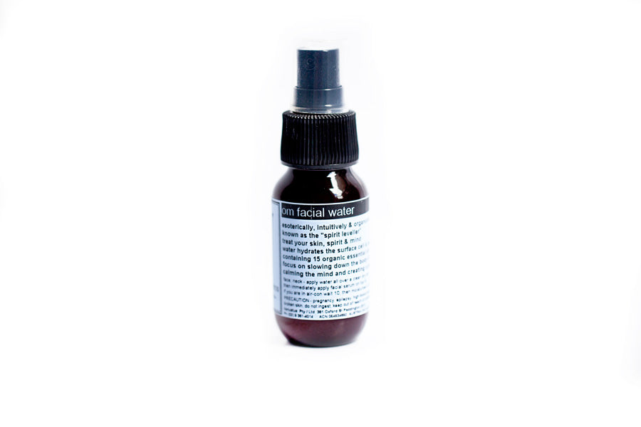 a blend of organic orange sweet, lime, frankincense, sandalwood, cedarwood, patchouli, bergamot, neroli, lemon, ylang ylang, rosemary, clary sage, lavender, cypress, geranium, juniperberry & rose suspended in water